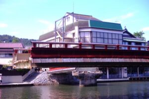 船が通るたびに90度旋回する珍しい橋で、天橋立と文殊堂のある陸地をつなぐ橋です。
