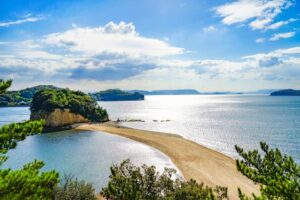 エンジェルロードは1日2回、干潮時に海の中から現れる砂の道です。大切な人と手をつないで渡ると、願いが叶うと言われているロマンティックな場所です。