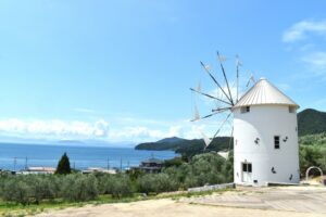 瀬戸内海を見下ろす小高い丘にある白いギリシャ風車があったり、オリーブの歴史に触れることができるオリーブパークや、