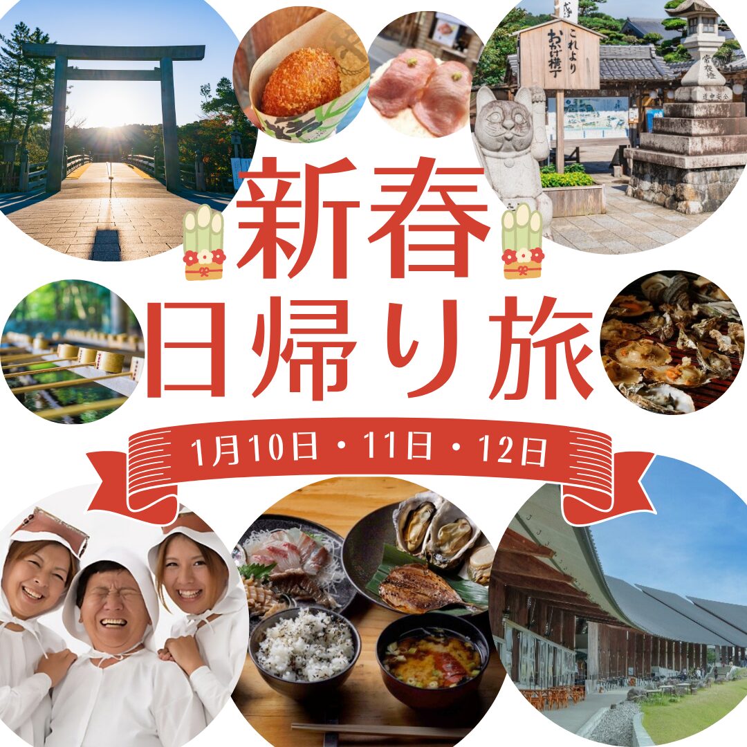 2026年1月 出発時間は確定時にご連絡致します。目安7:00~8:00 お日にち:1/10(土)・1/11(日)・1/12(月・祝) ・新石切駅・住道駅・寝屋川市駅