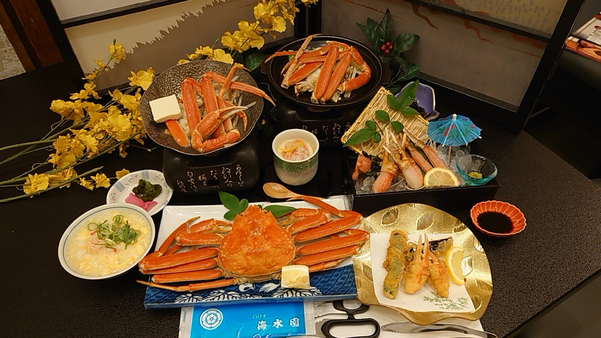 ・姿がに1杯・焼きガニ半身・カニすき半身・蟹刺し・蟹天ぷら・かに茶碗蒸し・かに雑炊